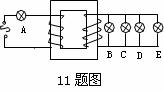 11.如图所示,一理想变压器原副线圈匝数比为4:1,图中五只电灯完全相同,若B、C、D、E都能正常发光,则A灯
