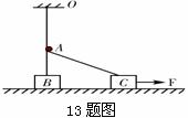 13.弹性轻绳的一端固定在O点,另一端拴一个物体,物体静止在水平地面上的B点,并对水平地面有压力,O点的正下方A处有一垂直于纸面的光滑杆,如图所示,OA为弹性轻绳的自然长度,现在用水平力使物体沿水平面运动,在这一过程中,物体所受水平面的摩擦力的大小的变化情况是