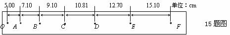 15.(4分)某同学在做“测定匀变速直线运动的加速度”实验时,从打下的若干纸带中选出了如图所示的一条(每两点间还有4个点没有画出来),图中上部的数字为相邻两个计数点间的距离。打点计时器的电源频率为50Hz。