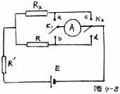 18.(6分)如图18―1是为测量电阻面设计的电路,Rx为待测电阻。R′为保护电阻阻值未知,已知R的阻值,电源E的电动势未知,K1、K2均为单刀双掷开关。A为电流表,其内阻不计。18―2是按电路图连接的实物图。测量Rx的步骤为:将K2向d闭合,K1向 ____ 闭合,记下电流表读数I1,再将K2向C闭合,K1向 闭合,记电流表读数I。 计算Rx的公式是Rx= .