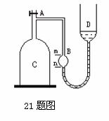 已知大气压强为760mmHg,钟罩和管AB(到达m处)的体积为V=