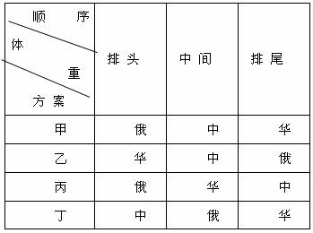 表示大个头的俄罗斯士兵,“华”表示小个头的中国士兵,“中”表示较小个头的俄罗斯士兵或较大个头的中国士兵,则合理的排队方法是(已知士兵的武器装备完全相同)( )