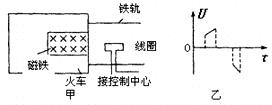 8.青藏铁路刷新了一系列世界铁路的历史纪录,青藏铁路火车上多种传感器运用了电磁感应原理,有一种电磁装置可以向控制中心传输信号以确定火车位置和运动状态,原理是将能产生匀强磁场的磁铁,安装在火车首节车厢下面,俯视如图甲,当它经过安放在两铁轨间的线圈时,便产生一个电信号,被控制中心接收到,当火车通过线圈时,若控制中心接收到的线圈两端的电压信号为图乙所示,则说明火车在做