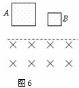 10.如图6所示,A、B为不同金属制成的正方形线框,导线截面积相同,A的边长是B的2倍,A的密度是B的1/2,A的电阻率是B的2倍,当它们的下边在同一高度竖直下落,垂直进入如图所示的磁场中,A框恰能匀速下落,那么 ( )