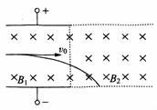 18、如图所示为一速度选择器,不论什么带电粒子(不计重力),只要以某一速度vo沿图示实线方向(vo,E,B1三矢量正交)射入便可以沿直线穿过,今有一带电粒子以v1≠vo的速率与vo同向射入速度选择器后,沿图示轨迹飞入偏转磁场B2,速率变为v2,则下列关系式成立的是( )