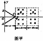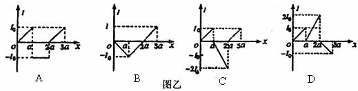 )导线框ABC从图示位置沿图示方向匀速穿过两磁场区域,以逆时针方向为电流的正方向,在图乙中感应电流I与线框移动距离x的关系图象正确的是 ( )