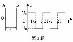 2、两金属板A、B相距为d,板间加上如图所示的电压