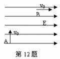 12、如图所示,一个质量为m,电量为q的小球,以速度v0从A点竖直向上进入水平向右,场强为E的匀强电场中,到B点时速度变为水平向右的v0,则小球在这个运动过程中作__________运动(填“匀变速”或“非匀变速”),速度的最小值是__________.