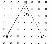 21.如下图所示,边长为L的等边三角形ABC为两有界匀强磁场的理想边界,三角形内的磁场方向垂直纸面向外,磁感应强度大小为B,三角形外的磁场(足够大)方向垂直纸面向里,磁感应强度大小也为B。把粒子源放在顶点A处,它将沿∠A的角平分线发射质量为m、电荷量为q、初速度为v0的带电粒子(粒子重力不计)。若从A射出的粒子( )