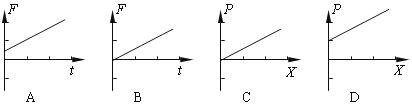 在光滑的水平桌面上(桌面未画出),有一边长为L的正方形线框,质量为m,同时空间有宽为L的匀强磁场B,方向竖直向下,现对线框施加一水平向右的力F,让线框向右匀加速通过磁场,在运动过程中,线框始终有一边与磁场的边界平行。如图取它刚进入磁场的时刻为计时起点与位移起点,速度亦为零。那么在线框通过磁场过程中,能定性表示力F与时间t的关系及线框中感应电流的瞬时功率与位移X的关系的是(以向右为正方向)
