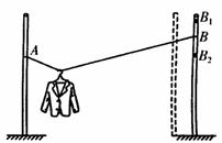 15.如图所示,晾晒衣服的绳子轻且光滑,悬挂衣服的衣架挂钩也是光滑的,轻绳两端分别固定在两根竖直杆上的A、B两点,衣服处于静止状态。如果保持绳子A端位置不变,将B端分别移动到不同的位置。下列判断正确的是 ( )
