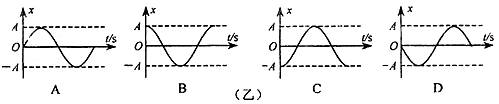 2. 一个弹振子在A、B间做简谐振动,O为平衡位置,如图(甲)所示。取向右为正方向,从某时刻开始计时(t=0),经1/4周期,振子具有正方向的最大加速度,那么图(乙)所示的几个振动图线中,能正确反映振子振动情况的是 ( )