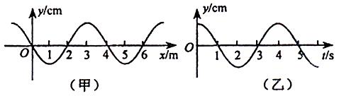 正方向传播,图(甲)是t=1s时的波形,图(乙)是波中某质元位移随时间变化的振动图线(两图用同一时间起点),则图(乙)可能是图(甲)中哪个质元的振动图线 ( )