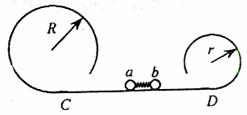 19.(14分)如图所示,半径分别为R和r(R>r)的两光滑轨道固定在同一竖直平面内,两轨道之间由一光滑水平轨道CD相连,在水平轨道CD上有一轻弹簧被a、b两个小球夹住,但不拴接,已知a、b的质量分别为ma和mb且ma=2mb,同时释放两小球,a、b两球都能通过各自轨道的最高点,则弹簧在释放前到少应具有多大的弹性势能?