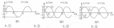 4. 图1是t=1.0s时沿x轴负方向传播的平面简谐波的图象,已知波速u=