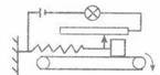 6. 如图所示,水平的传送带上放一物体,物体下表面及传送带上表面均粗糙,导电性能良好的弹簧的右端与物体及滑动变阻器滑片相连,弹簧左端固定在墙壁上,不计滑片与滑动变阻器线圈间摩擦.当传送带如箭头方向运动且速度为