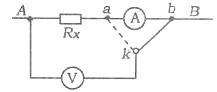 13.如图所示,用伏安法测定未知电阻RX,已知AB接在恒定的电压两端,当开关接通a时,电压表示数为10V,电流表示数为