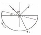 ,入射角为45°(相应的折射角为24°),现保持入射光不变,将半圆柱绕通过O点垂直于图面的轴线顺时针转过15°,如图中虚线所示,则光束2转过的角度等于_________.