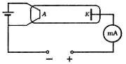 18.(10分)如图所示,为真空电子射线管,当电源接通时A极就发射电子,电子在A、K间的电场作用下向K板移动而形成电子流,若AK两极间加速电压为80V,电子被阳极K全部吸收,电流表读数为500mA,求电子流轰击K板时对K板的压力.(电子电量为1.6×10-
