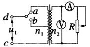 6.如图所示,理想变压器原、副线圈的匝数比为10┱1,b是原线圈的中心抽头,电压表V和电流表A均为理想电表,除滑动变阻器电阻R以外,其余电阻均不计,从某时刻开始在原线圈c、d两端加上交变电压,其瞬时值表达式为