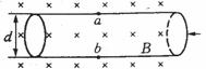 13.如图为电磁流量计的示意图,直径为d的非磁性材料制成的圆形导管内有导电液体向左流动,磁感应强度为B的匀强磁场垂直于导电液体流动方向穿过一段圆形管道。稳定后测得管壁内a、b两点间的电势差为U,则管壁上 (填a或b)点电势更高,管中导电液体的流速V=