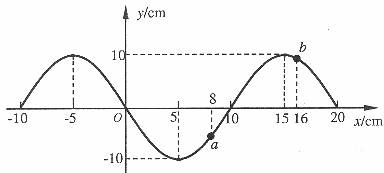 16.一列简谐横波沿X轴负方向传播,周期为0.2s,某时刻波形如下图所示,介质中质点a、b的平衡位置距原点o的距离分别是