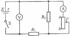 19.如下图所示的电路中,电源的内阻不可忽略,开关s闭合后,当滑动变阻器的滑片P向6端移动时,以下结论中正确的是