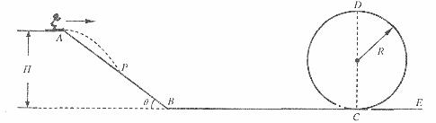 一种用于特技表演的滑雪赛道如下图所示,它是由斜面赛道AB、水平赛道BC和圆弧赛道CD组成,整个赛道处于同一竖直平面内,斜面高度H=