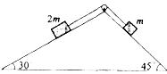 6.如图所示,两光滑斜面的倾角分别为30°和45°,质量分别为2m和m的两个滑块用不可伸长的轻绳通过滑轮连接(不计滑轮的质量和摩擦),分别置于两个斜面上并由静止释放;若交换两滑块位置,再由静止释放.则在上述两种情形中正确的有