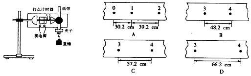 13.(6分)利用下图所示的装置,在做“测量重力加速度” 的实验中,得到了几条较为理想的纸带.已知每条纸带上每5个点取一个计数点,即两计数点之间的时间间隔为0.1 s,依打点先后编为0,1,2,3,4,…….由于不小心,纸带都被撕断了,如图所示,根据给出的A、B、C、D四段纸带回答: