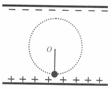 20.如图所示,两个水平放置的很大的带电金属板间,一长为