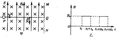 ),经研究,可在电场所在的空间叠加如图乙所示随时间周期性变化的、垂直纸面向里的磁场,如图乙,图中
