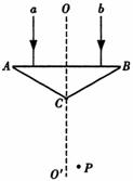 (1)如下图所示,A、B、C为等腰棱镜,a、b两束不同频率的单色光垂直AB边射入棱镜,两束光在AB面上入射点关于OO/ 对称,两束光折射后相交于图中的P点,以下判断正确的是: