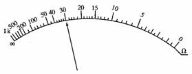 ①首先,用多用电表进行粗测:多用电表电阻挡有4个倍率,分别是×1kΩ、×100Ω、×10Ω、×1Ω。该同学选择×10Ω倍率,用正确的操作方法测量,发现指针偏角太小(接近左端)。为了较准确地进行测量,他又将选择开关拨到了与×10Ω邻近的倍率上,若这时刻度盘上的指针位置如图所示,那么测量结果是 _______ Ω.