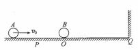 25.(19分)在光滑的水平面上,质量为m1的小球A以速率v0向右运动. 在小球A的前方O点有一质量为m2的小球B处于静止状态,如图所示,小球A与小球B发生正碰后小球A、B运动方向相反,小球B被在Q点处的墙壁弹回后与小球A在P点相遇,OQ=1.5OP. 假设小球间的碰撞及小球与墙壁之间的碰撞都是弹性的,求两小球质量之比m1/m2。