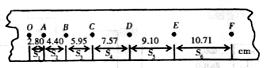 I:(8分)如图是某同学用打点计时器打出的一条纸带,图上注明了他对各计数点间距离 的测量结果,相邻两计数点间有4个点未画出。交流电的频率为50Hz,打下计数点C时纸带的瞬时速度为 m/s。纸带的加速度为 m/s2。(充分利用已知数据,尽量减小误差,结果保留三位有效数字)