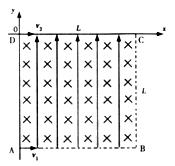 25.(20分)如图所示,在直角坐标系的第Ⅳ象限中存在竖直向上大小为E=20N/C的匀强电场和垂直纸面向里大小为B=0.5T的匀强磁场,两场正交的剖面区域为边长L=5m的正方形ABCD。现有两个可看作质点的小球从区域的A、D两点水平射入场区,已知A点入射小球l带正电,带电量为q=1.6×10-3C、质量m=3.2×10-3kg,速度是;D点入射小球2不带电,速度为。重力加速度取10m/s2。求:(结果可用根式表示)