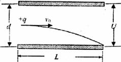 20.如图所示,带正电的粒子以一定的初速度v0沿两板的中线进入水平放置的平行金属板内,恰好沿下板的边缘飞出.已知板长为L,板间距离为d,板间电压为U,带电粒子的电荷量为q,粒子通过平行金属板的时间为t(不计粒子的重力),则 ( )