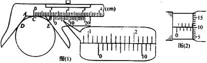 22.(18分)I.①有一种在工厂实际使用的游标卡尺如图所示,它是普通游标卡尺的变形。它把普通游标卡尺两个卡脚改成了斜的.两个斜卡脚与主尺都成126°52′12″(图中的∠DAC=∠EBC=126°52′12″,已知tan63°26′06″=2.000),其他部分未作改动,这种卡尺专门用来测量圆柱形或球形工件的外径。两个斜卡脚之间不放被测工件时,游标尺的“