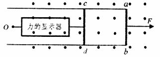 ,且接触始终良好。cd棒通过不可伸长的细线与一个固定在O点的力的显示器相连,始终处于静止状态。现在让框架由静止开始在水平恒定拉力F的作用下(F是未知数),向右做加速运动,设最大静摩擦力和滑动摩擦力相等。最终框架匀速运动时力的显示器的读数为2