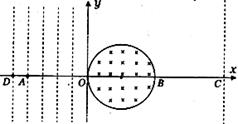 0的区域内分布着匀强电场,其等势线如图中虚线所示(相邻等势面间的距离相等)。在A点源源不断的产生速率为零、质量为m、电荷量为+q的粒子,经电场加速后从O点进入一个圆形的匀强磁场区,其磁感应强度为B,方向垂直纸面向里,其半径为R,直径OB在x轴上。在x=4R处有一个垂直x轴很大的光屏,与x轴的交点为C,粒子打在光屏上可出现亮点。设粒子的重力不计.A点所在的等势面电势为零,D点的电势为