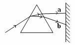 16.如图所示,一条由红光和蓝光组成的复色光通过玻璃棱镜发生色散现象,分成两束单色光a、b 。下列说法正确的是: ( )