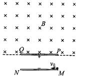 16.(11分)如图所示,MN、PQ是平行金属板,板长为L两板间距离为d,在PQ板的上方有垂直纸面向里足够大的匀强磁场.一个电荷量为q,质量为m的带负电粒子以速度V0从MN板边缘且紧贴M点,沿平行于板的方向射入两板间,结果粒子恰好从PQ板左边缘飞进磁场,然后又恰好从PQ板的右边缘飞进电场.不计粒子重力,求: