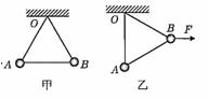 20.如图甲所示,用OA、OB、AB三根轻质绝缘绳悬挂两个质量均为m的小球,两球带等量同种电荷,三根绳子处
