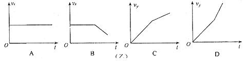 9.如图(甲)所示,从O点沿x方向水平抛出的物体,抵达斜面上端的P点时,其速度方向恰好与斜面平行,然后沿着斜面无摩擦滑下。从抛出点开始计时,下列描述该物体沿x方向和y方向运动的速度一时间图象中,大致正确的是 ( )