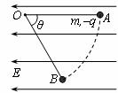 19.如下图所示,在场强大小为E的匀强电场中,一根不可伸长的绝缘细线一端拴一个质量为m电荷量为q的带负电小球,另一端固定在O点。把小球拉到使细线水平的位置A,然后将
