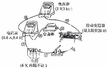 (2)测量该合金棒电阻的实物电路如图所示(相关器材的参数已在图中标出)。该合金棒的电阻约为几个欧姆。图中有一处连接不当的导线是__________.(用标注在导线旁的数字表示)
