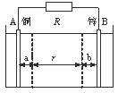 16.(6分)如图为伏打电池示意图,由于化学反应,在A、B两电极附近产生了很薄的两个带电接触层a、b。