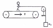 12.测定运动员体能的一种装置如图所示,运动员质量为m,绳拴在腰间沿水平方向跨过滑轮(不计滑轮质量及摩擦),下悬一质量为m2的重物,人用力蹬传送带而人的重心不动,使传送带以速率v匀速向右运动。下面是人对传送带做功的四种说法,其中正确的是( )