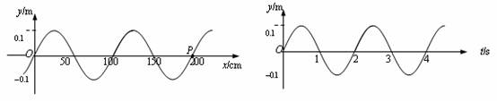 3.左图为一列简谐横波在t=20 秒时波形图,右图是x=200厘米处质点P的振动图线,那么该波的传播速度为________厘米/秒,传播方向为________________。